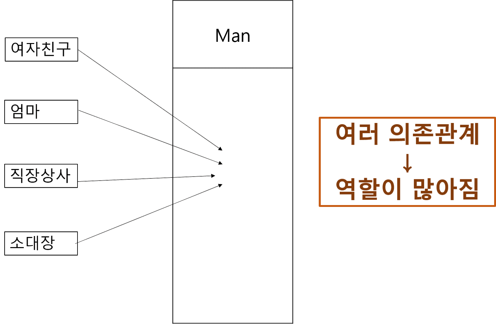 위 그림의 남자 클래스는 역할과 책임이많다 => 코드에서 냄새가 난다.