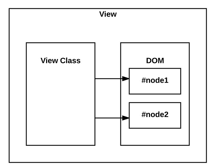위 코드는 html인데 여기서 “id”를 가지고 있는 h1 엘레멘트를 DOM 셀렉터를 통해 가질 수 있다. 이를 View 클래스로 나타내본다면 아래와 같다.